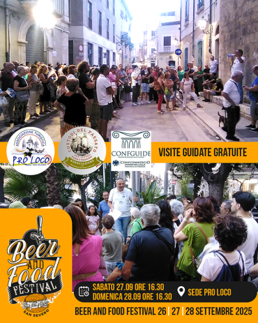 Visita guidata gratuita “San Severo, la Signora del Barocco” in collaborazione con la Proloco e l’associazione “Custodi del Passato”. Raduno per la partenza, davanti alla sede della ProLoco, in Via S. Giuseppe.